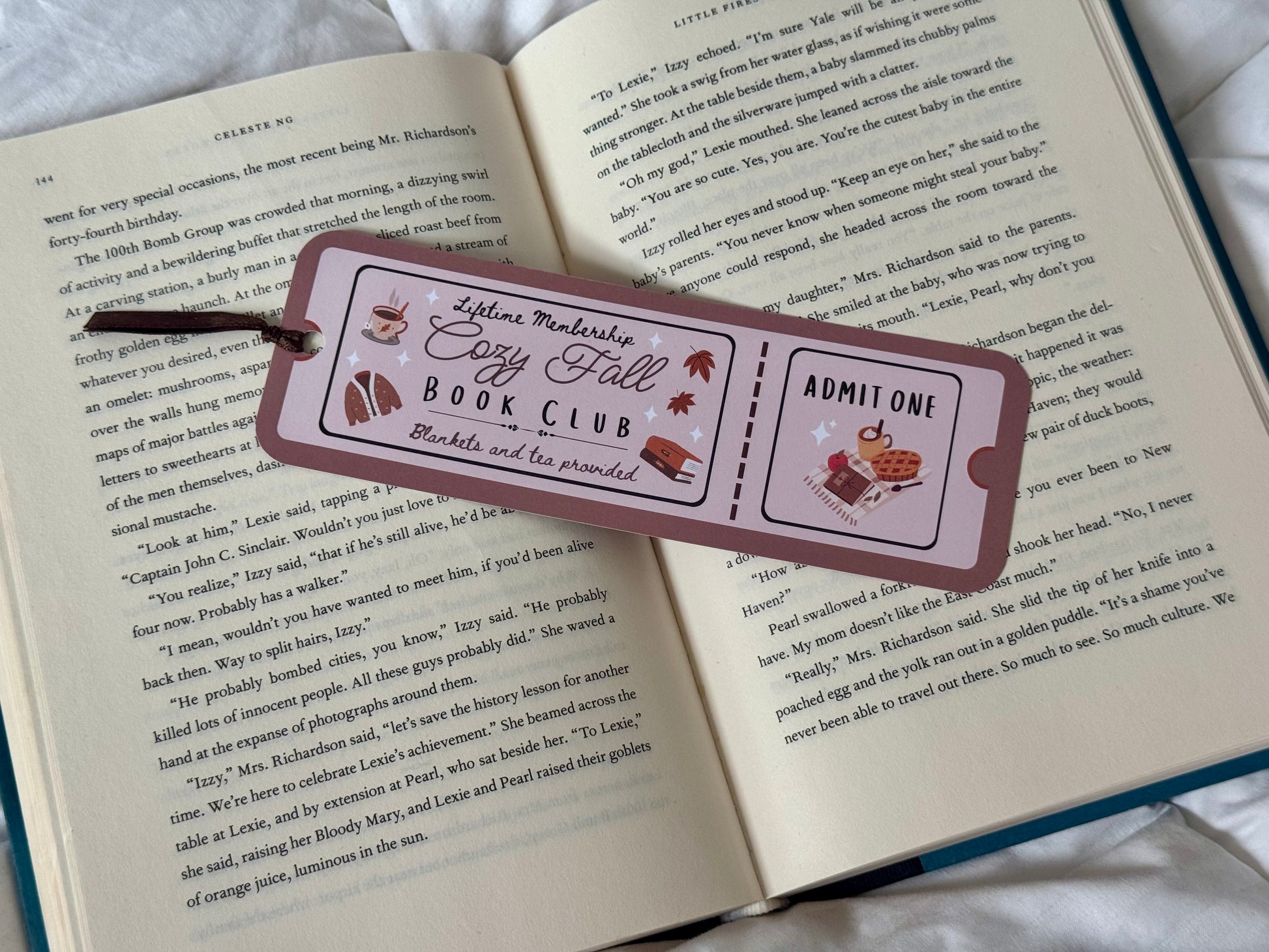 Cozy Fall Book Club Ticket Bookmark