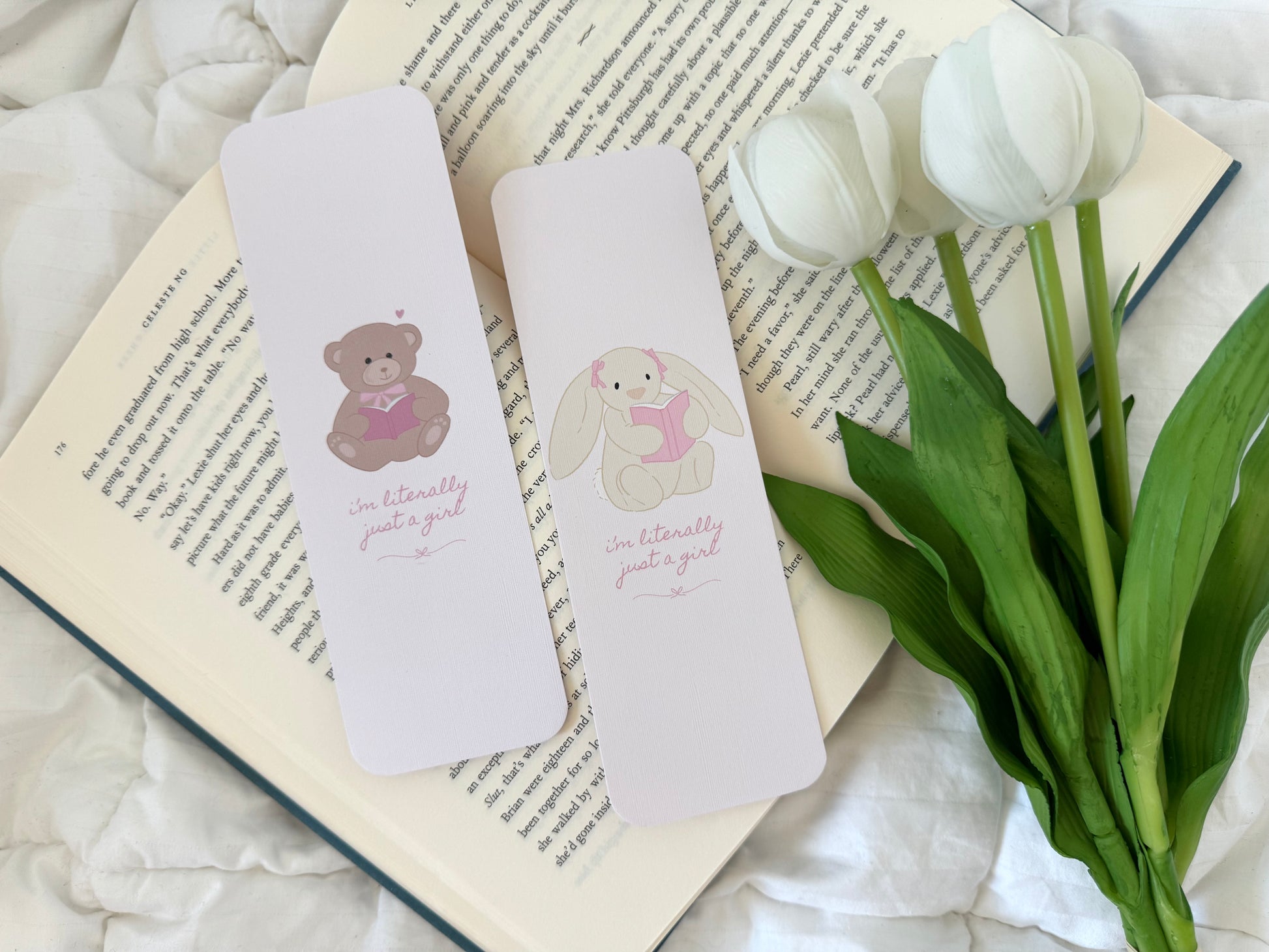Hand-drawn by us and printed double-sided & locally on high-quality linen paper, this bookmark is the perfect gift for any reader who is "literally just a girl" and loves everything pink and coquette! 🎀